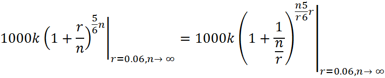 其实这个通过资本复利计算得到的一个上限值,也就是我们通常对货币计算未来/过去价值时使用的一个公式,它表示了极端情况下固定回报率的投资最大回报。